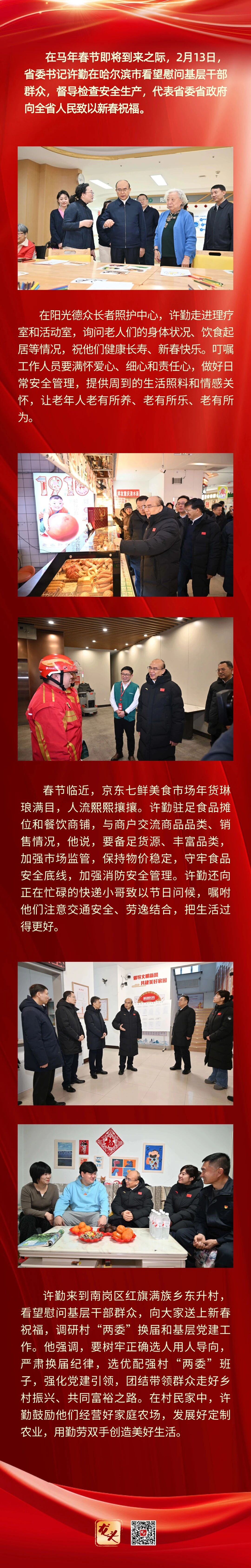 许勤春节前夕赴哈尔滨市看望慰问基层干部群众并督导检查安全生产